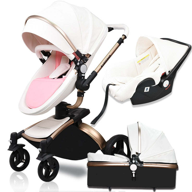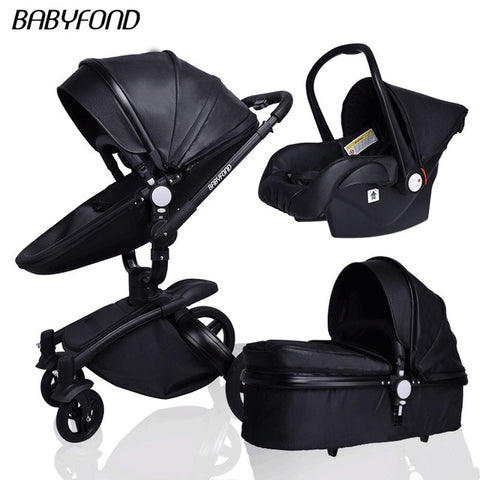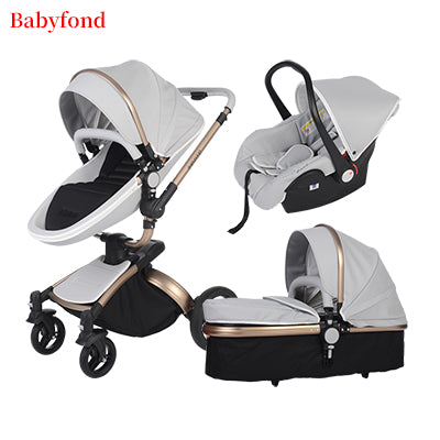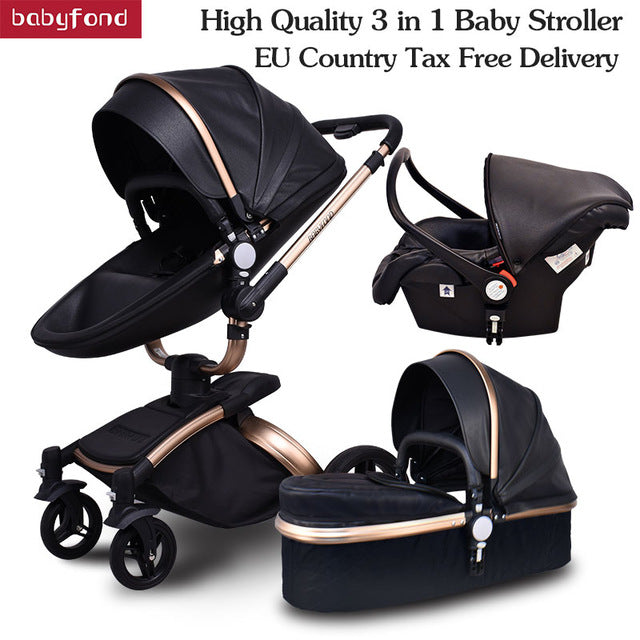 25usd coupon!luxury High landscape Baby Stroller 3 in 1 PU Leather Baby Car EU standard independent newborn basket babyfond pram